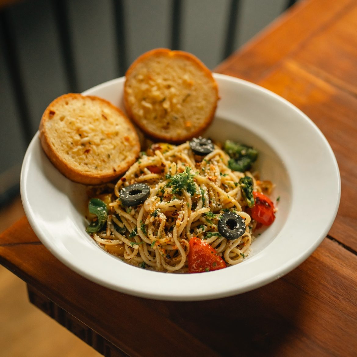 - Toss pasta in the skillet with garlic oil, adding reserved pasta water as needed for sauce consistency.