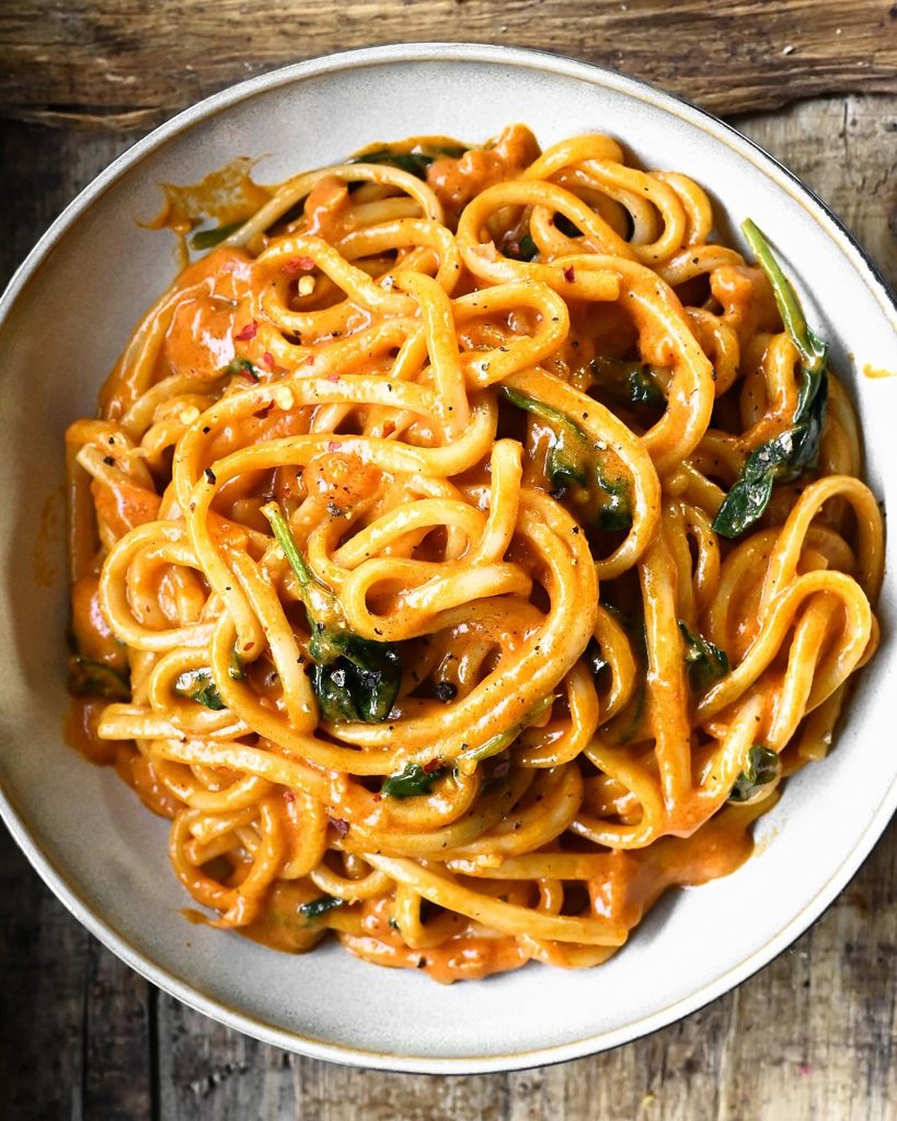 - Toss noodles in the sauce and heat through for 1-2 minutes.