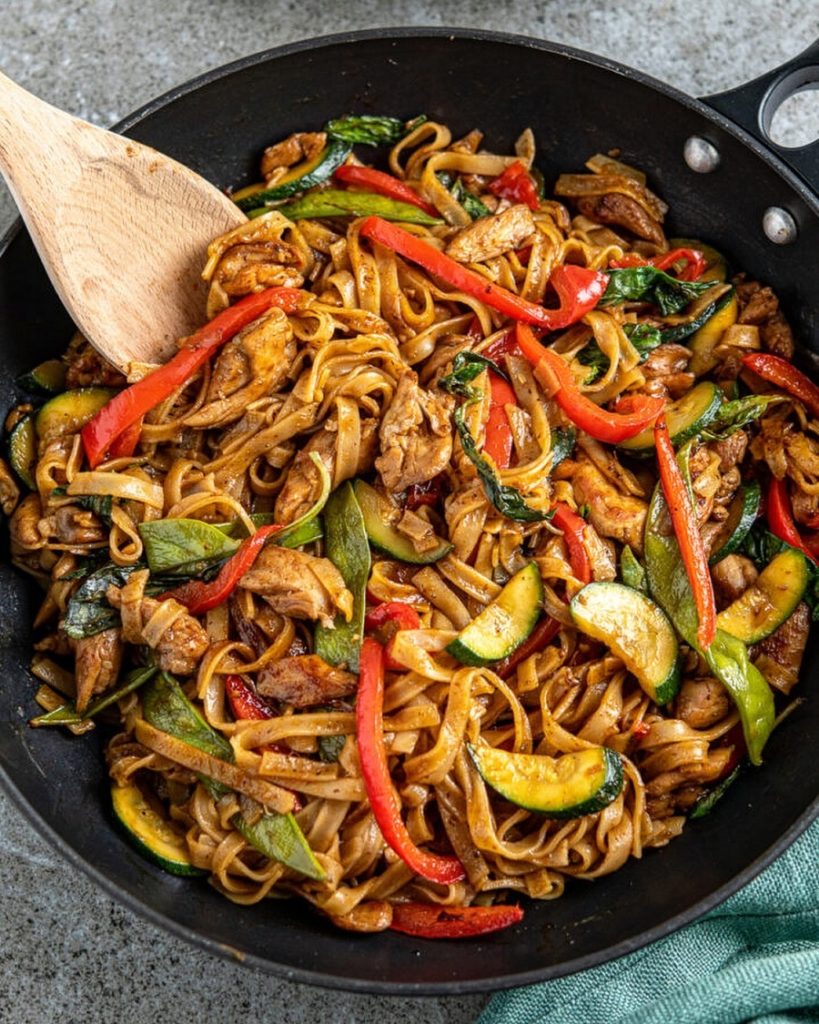 This spicy Thai basil chicken noodle dish is my go-to when I’m craving something bold and aromatic. I first made it after a trip to Thailand, where the street food left me obsessed with fresh basil’s punchy flavor. The mix of spicy chilies, savory chicken, and fragrant basil is a game-changer for weeknight dinners. It’s quick, healthy, and perfect for families who love a little heat. I make this when my kids beg for “something fun” to eat, and it never disappoints. You can dial down the spice for milder tastes or swap chicken for tofu for a vegetarian twist. Try this spicy Thai noodle dish and let it become your new favorite!